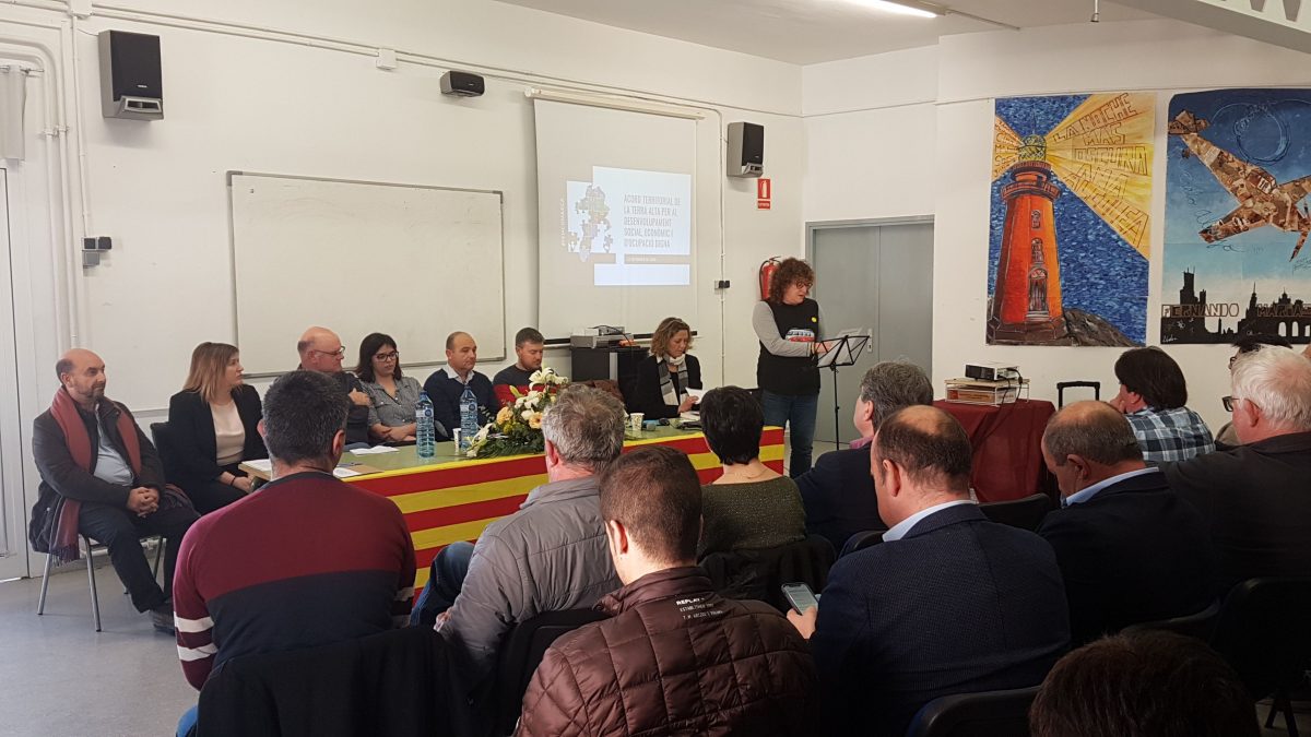 “Mitjançant una estratègia transversal i conjunta volem fer front comú als reptes de futur que afecten la comarca. A nivell polític tenim la necessitat de portar a terme un acord territorial per un desenvolupament conjunt de comarca on es posi davant de tot el bé comú del territori i de la seva gent”, ha expressat Jordi Martín, alcalde d’Horta de Sant Joan durant la seva intervenció. Després d’anys d’anàlisi dels factors necessaris per portar a terme aquest Acord i de debatre les problemàtiques que afecten els pobles de la Terra Alta, s’ha pogut constatar que els principals dèficits es troben en àmbits com el despoblament, un teixit productiu feble, la precarietat laboral, la discriminació de gènere, les persones migrades dins del context social i econòmic de la comarca, el paisatge i la manca d’una estratègia i concertació territorial a l’hora d’implementar-la. “Aquests són els set indicadors que marquen la nostra comarca i que hem cregut convenient treballar i pels quals ens comprometem a trobar un consens per part de tots els sectors per tal de poder-los abordar, revertir o canviar”, ha assenyalat Eva Amposta, alcaldessa del Pinell de Brai.