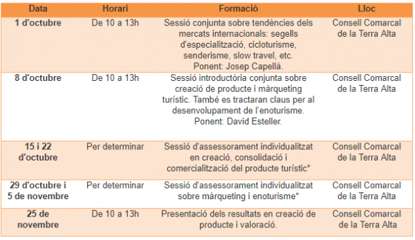 Calendari de les sessions formatives i assistència individualitzada: