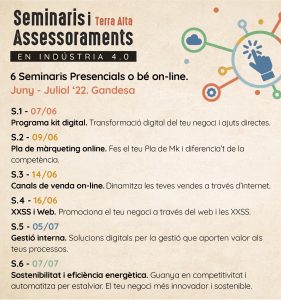 Els Seminaris de 4 hores cadascun, es faran presencialment a la seu del Consell Comarcal i també en línia :