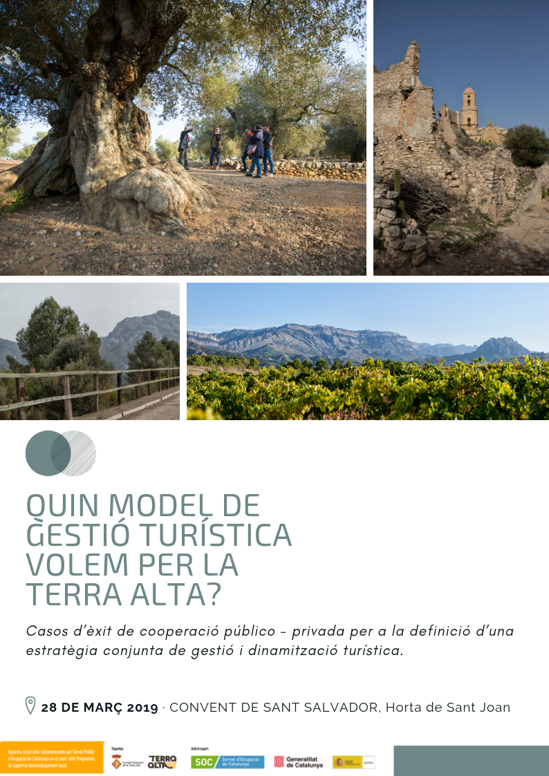 El proper dijous 28 de març, en el marc del projecte “Treball a les 7 comarques”, Terra Alta Més organitza una Jornada Professional adreçada al sector turístic de la Terra Alta per conèixer diferents models d’èxit de gestió turística a Catalunya i debatre sobre elements que podrien ser d’interès pel futur turístic de la comarca. La Jornada tindrà lloc al Convent de Sant Salvador, a Horta de Sant Joan, de les 09:00h del matí a les 13:30h del migdia.